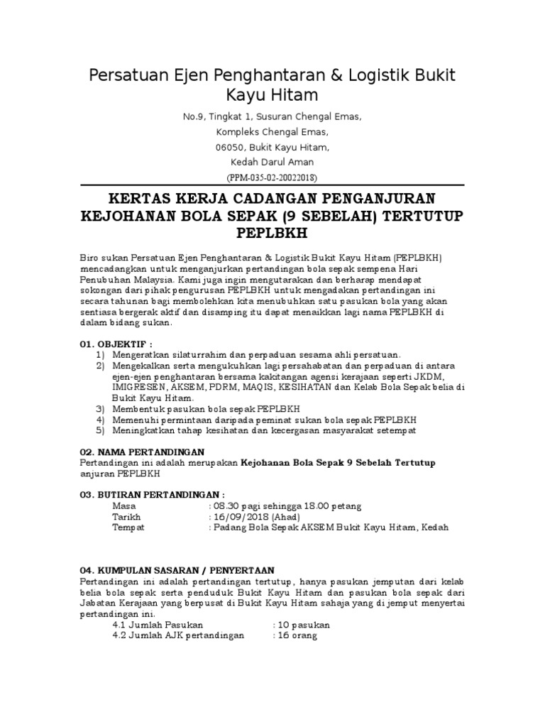 Kertas Kerja Kejohanan Bola Sepak 9 Sebelah Peplbkh Pdf